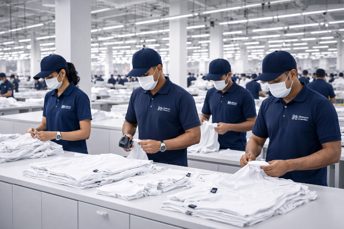 This layered quality approach helps ensure that garments meet defined specifications before moving to packaging. Quality processes are designed to support consistency across fabric lots, production batches, and program timelines.